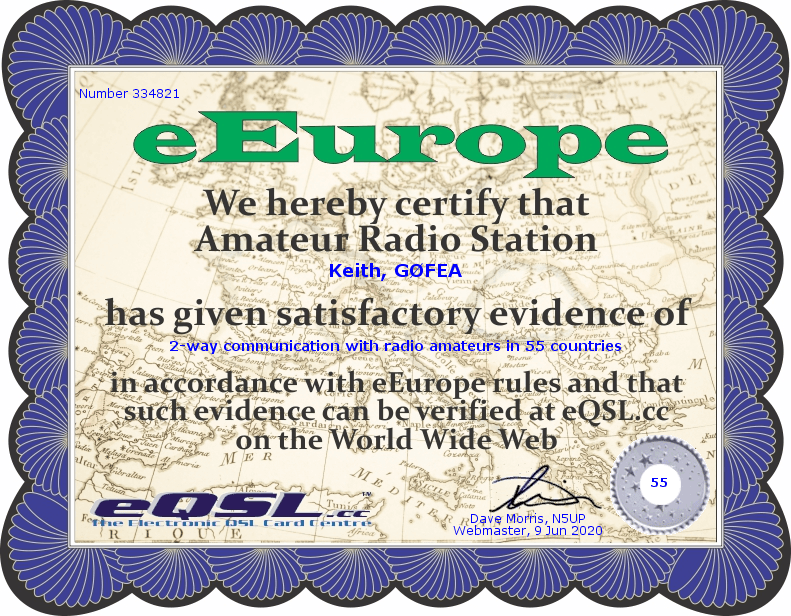 As previously mentioned many amateurs opt to send QSL cards in electronic format. Below are some that I have received and awards which have confirmed contacts with different stations across the world.