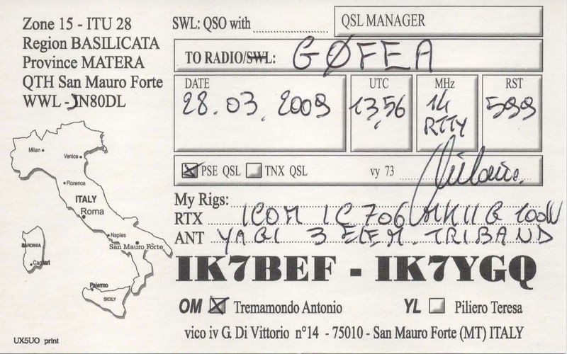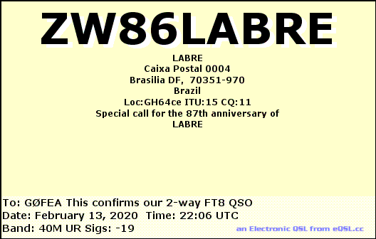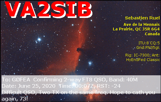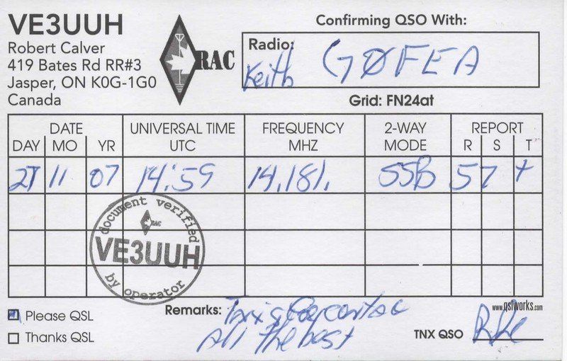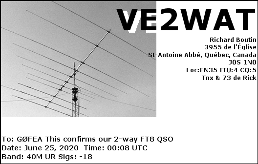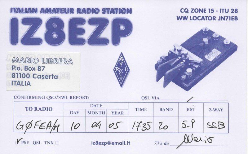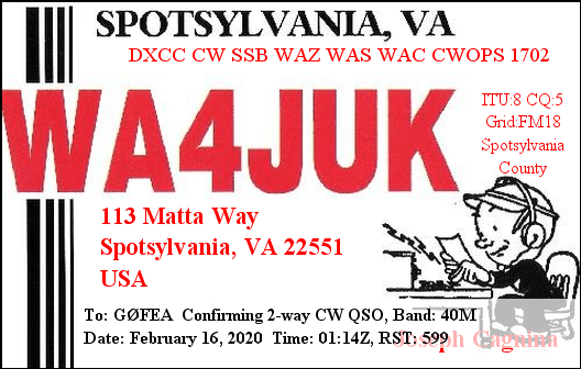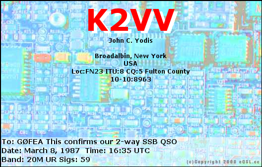 PLEASE NOTE: my QSL policy is very simple. I automatically send electronic QSLs via eQSL and HDRlog upon completion of a QSO. I receive and reply to paper QSL cards via the bureau. I always reply to SWL QSL cards.