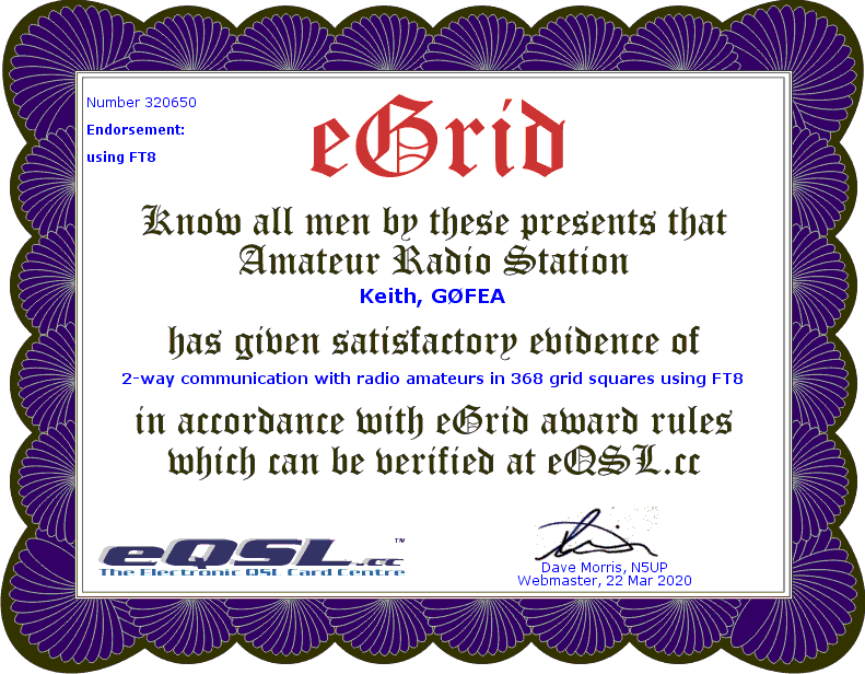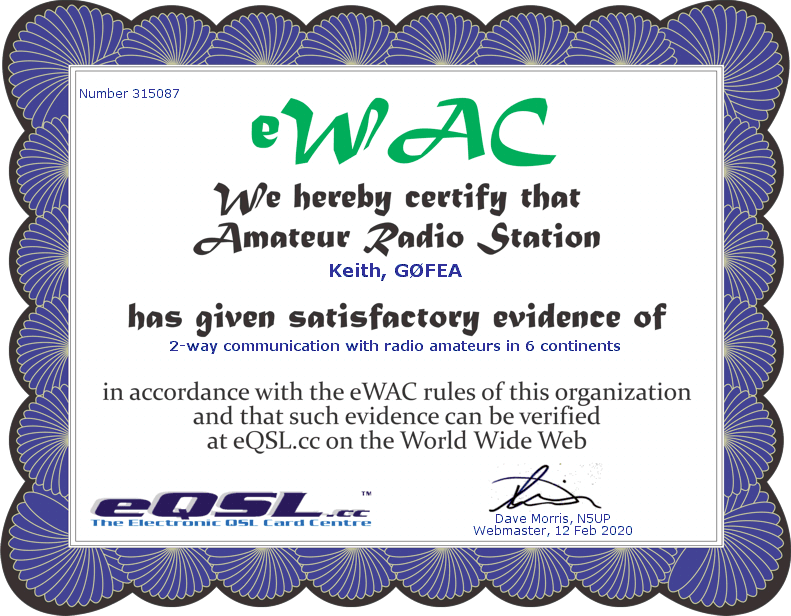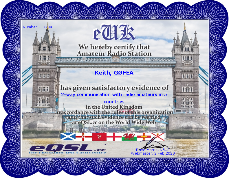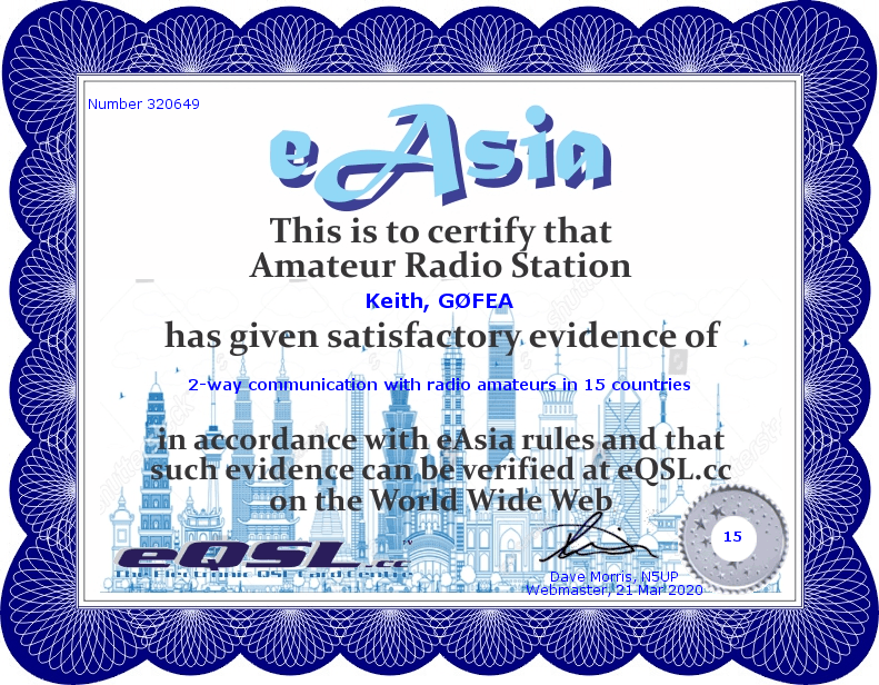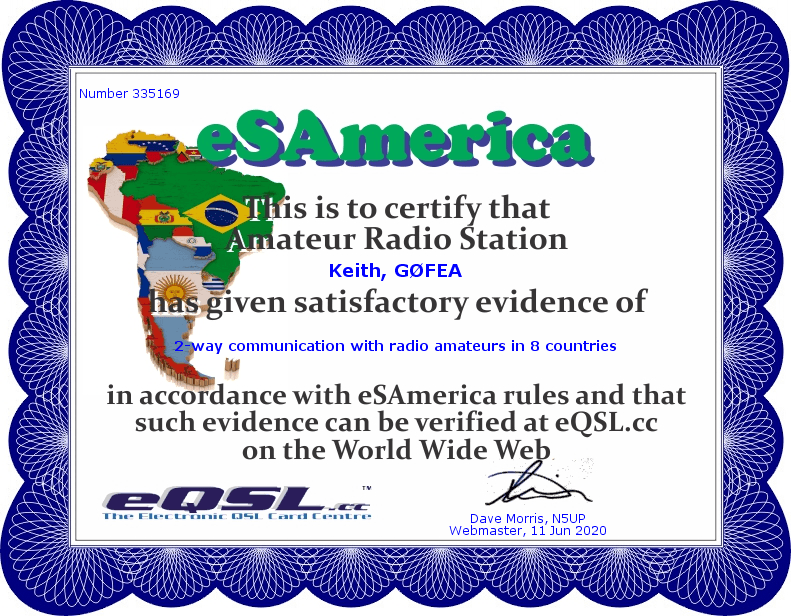 As previously mentioned many amateurs opt to send QSL cards in electronic format. Below are some that I have received and awards which have confirmed contacts with different stations across the world.
