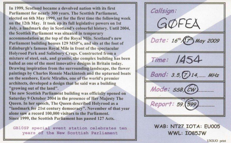 Below are a few of the many QSL cards I have received following contacts with fellow Hams.